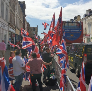 Ayr is a Unionist town that voted No in 2014, so it's no surprise that the ScotNats had to bus in their supporters from across the country. We were proud to be able to stand up for the Silent Unionist Majority, and made sure to greet the ScotNats with our trademark display of Red, White & Blue as they marched past! We're taking on the Nats across Scotland this Summer. As Scotland's leading pro-UK campaign group, our counter-demonstrations are just part of our broad activism to Maintain the Union. If you value what we do but can't be with us on the streets, we welcome donations of any size so we can continue our campaign to Keep Scotland British.